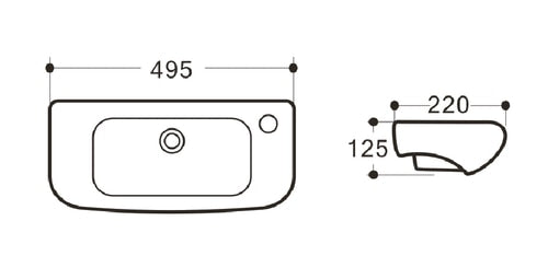 495*220*125mm it. H. On r/h only. 370mm between 2 fixing holes.